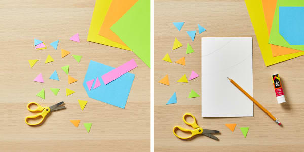 You can make a card for a friend by folding construction paper in half or cutting a shape out of it, then writing a nice note or drawing a pretty.